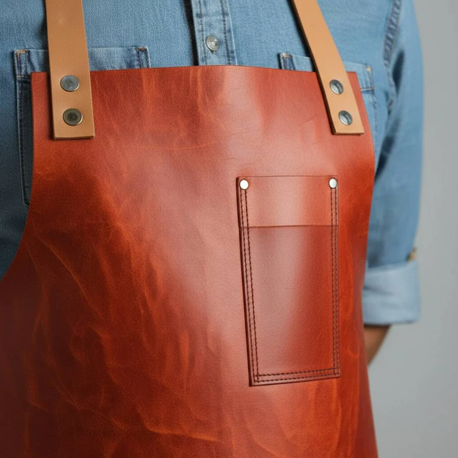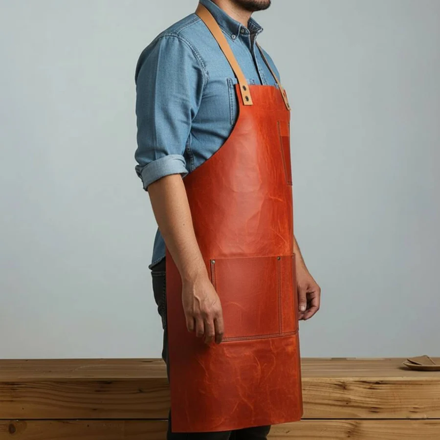 - Leather Quality: Our apron is constructed from the finest cowhide leather, offering a resilient yet supple garment that endures the demands of any task.