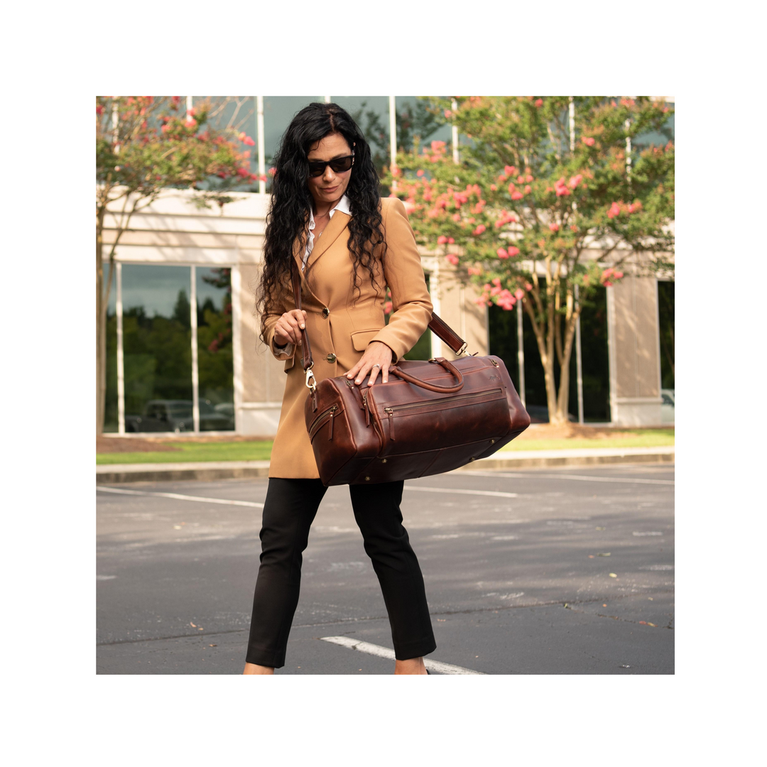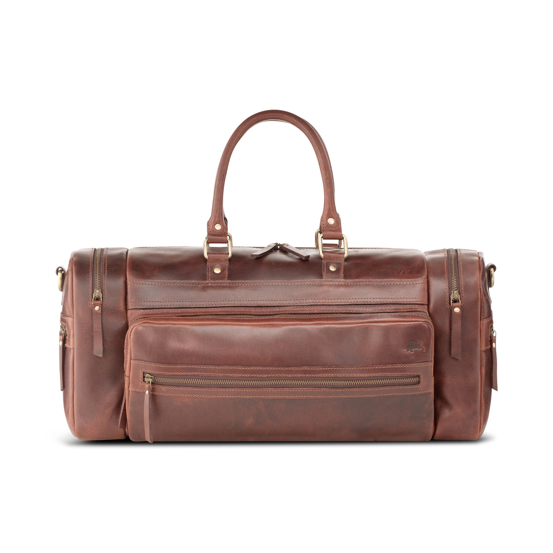 The Atlas Duffel bag is the essential travel bag made of our signature high-quality buffalo leather. This roomy leather bag has space for all of the necessities for your trip. We even added extra features to this bag such as a built-in card holder, two pen slots, and a phone pocket for added convenience. Multiple exterior zip pockets help you stay organized on the go. With top handles and a comfortable cross body strap you will be reaching for this stylish bag next time it’s time to pack for a trip!