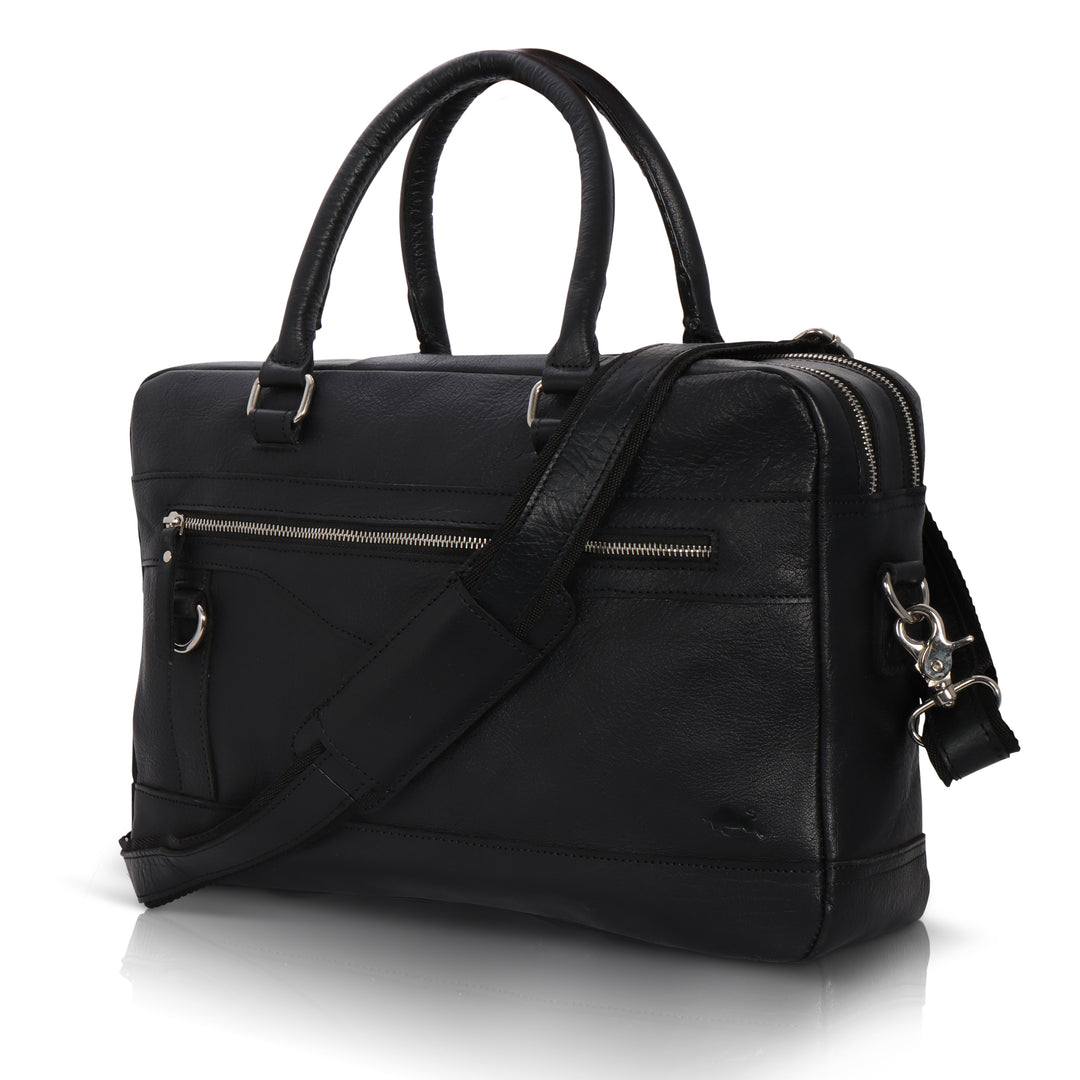 Our Coal leather briefcase is a classy bag with exceptional durability. This versatile leather briefcase is made of high-quality buffalo leather and handmade with attention to detail. It includes multiple pockets in the front, back, and on the inside. With a soft cloth interior and a laptop compartment this bag is perfect for storing laptops, notebooks, and folders.