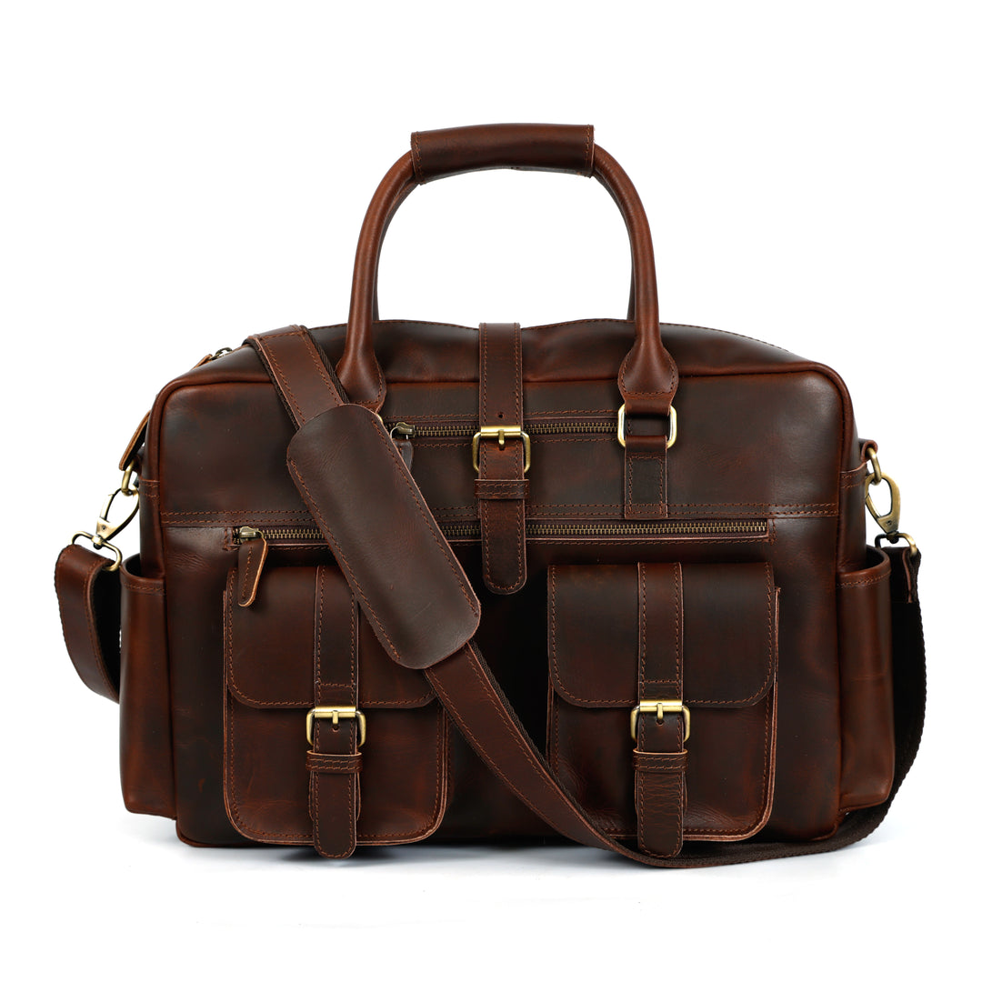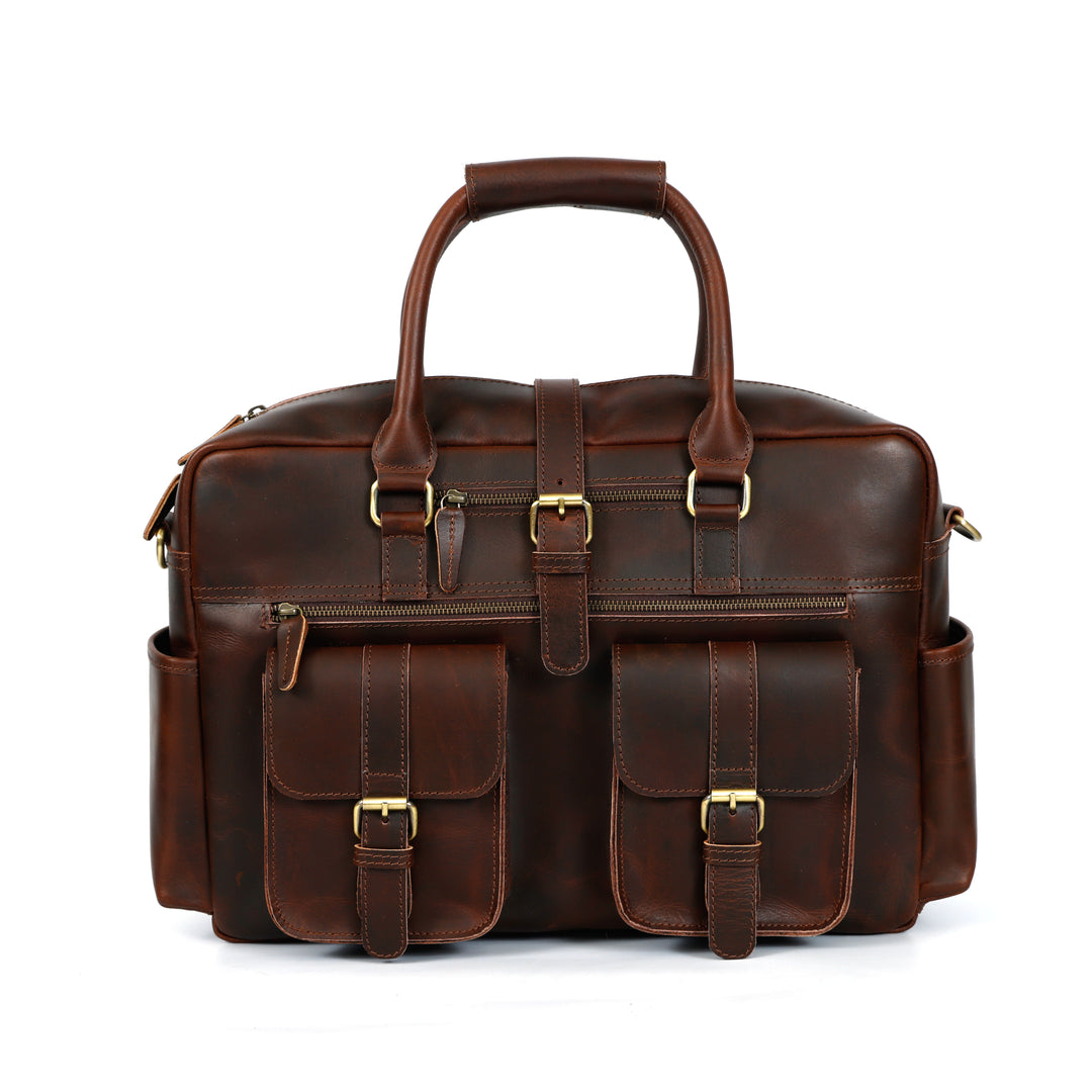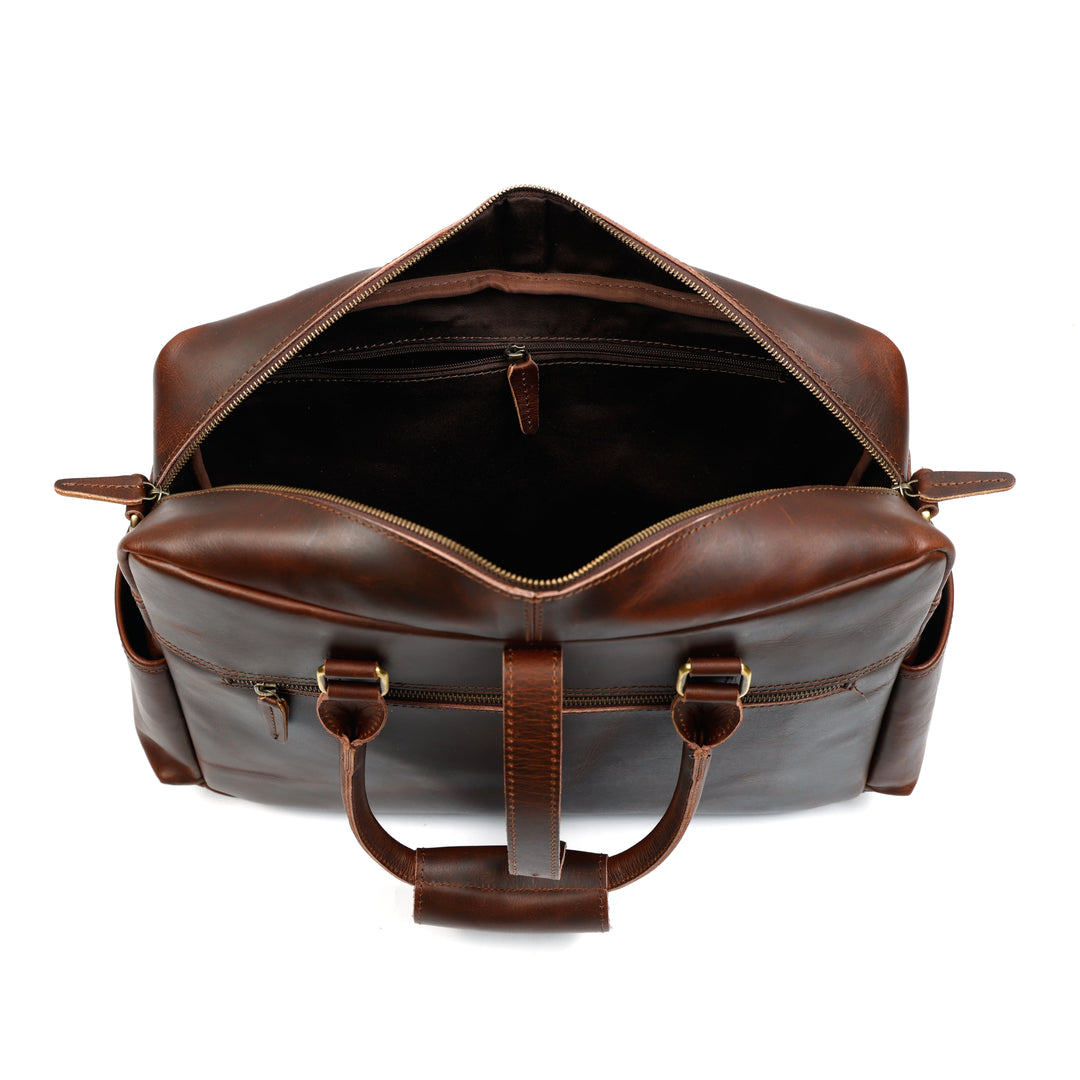 The Haven Buffalo Leather Briefcase combines timeless elegance with everyday practicality. Hand-finished from premium buffalo leather, this sophisticated bag adapts seamlessly to any professional setting while developing a rich patina over time. Designed with purpose, it features a secure front zip pocket, cushioned laptop compartment, and cloth lined interior giving you organized storage for all your essentials. Invest in a briefcase that works as hard as you do and looks better doing it.
