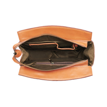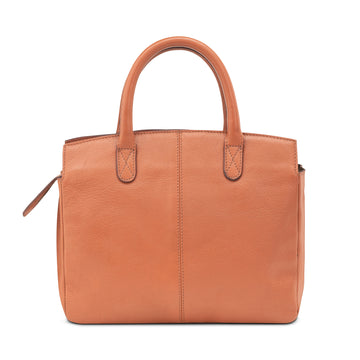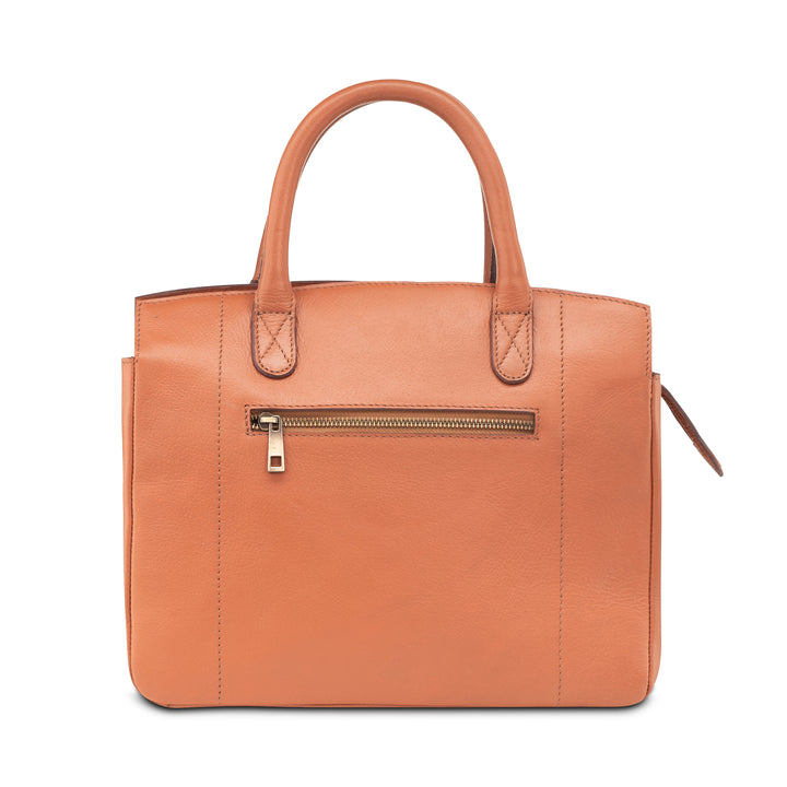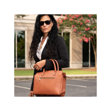 Perfect for every occasion, our elegant Hazel leather handbag demonstrates your fashion flair and complements any outfit. Enjoy the smooth feel and luxurious look of real leather. The top zipper closure keeps contents secure while traveling or commuting. Offered in a fun and stylish camel color that will brighten up any look. The Hazel leather handbag is the perfect size for every day and it is sure to make an impression.