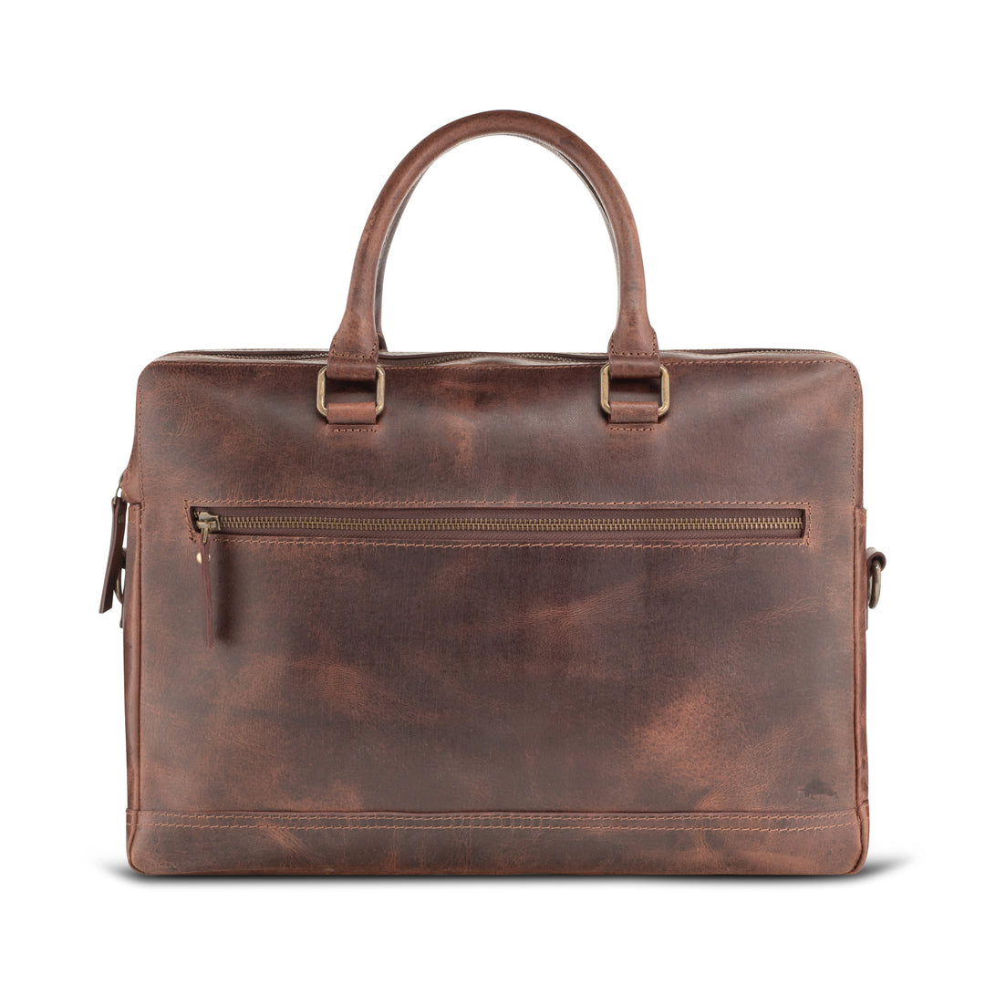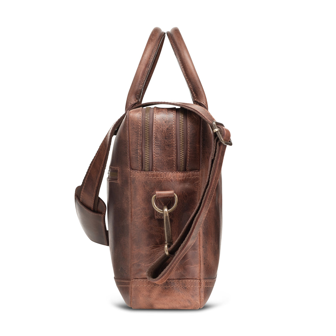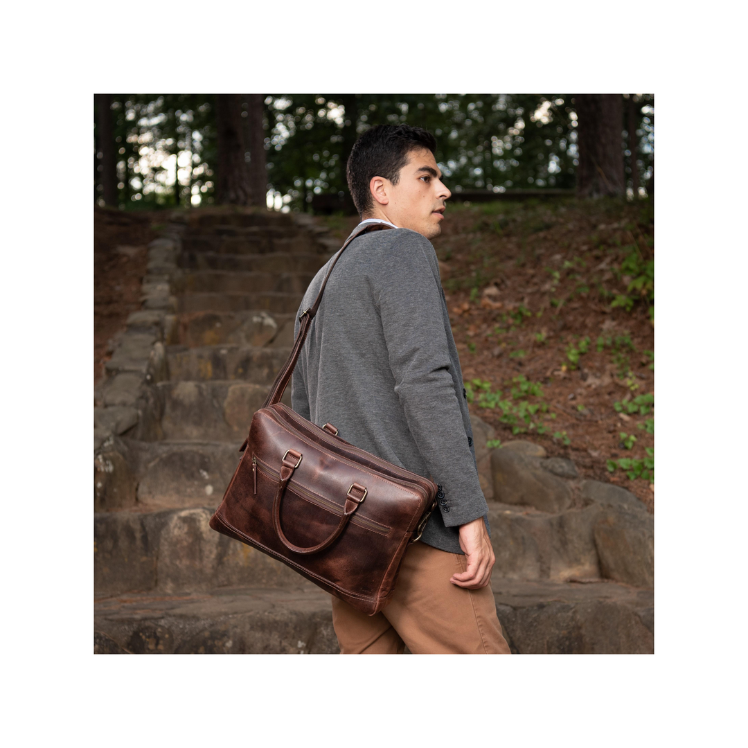 Our sophisticated Indigo leather briefcase in our signature stylish and durable leather will complement any look. This versatile leather briefcase is made of superior buffalo leather and handmade with attention to detail. It includes a front zip pocket and a soft cloth interior with a laptop compartment. This bag is perfect for storing laptops, notebooks, and folders.