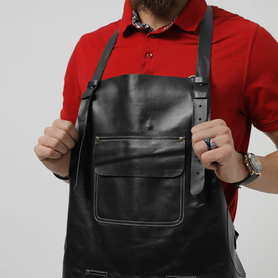 High-Quality Leather: Made from the finest 100% genuine cowhide leather, this apron promises exceptional durability that only gets better with age, developing a beautiful patina over time.