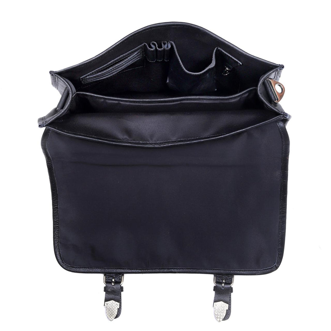 Introducing our Landon Black Leather Messenger Bag! Handcrafted with premium buffalo leather and accented with sleek silver hardware, this messenger bag exudes sophistication and durability. With its timeless design and quality materials, this bag is the perfect combination of style and functionality. Upgrade your daily carry with the Landon Messenger Bag!