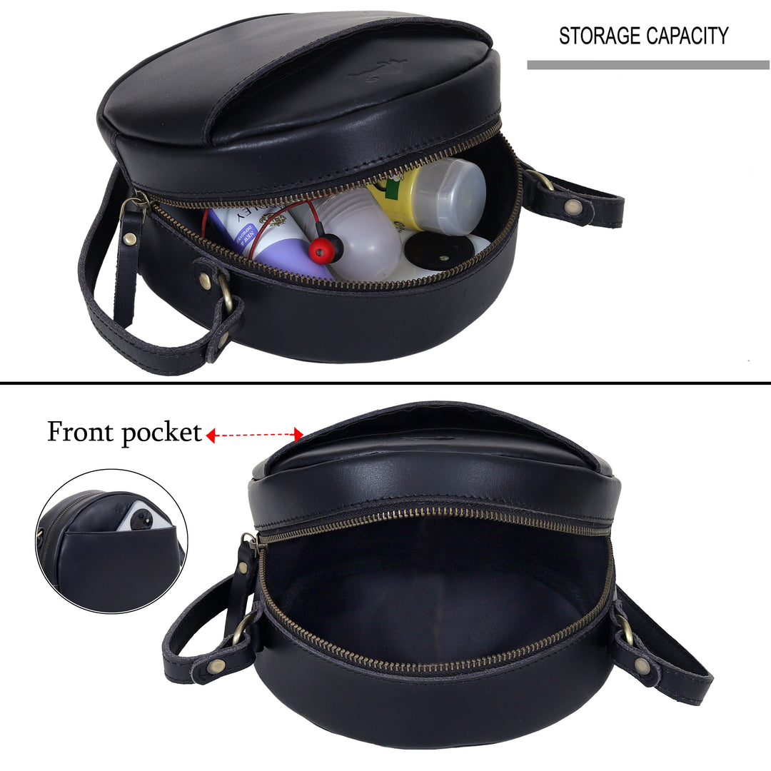 Lydia Round Circle Buffalo Leather Handbag