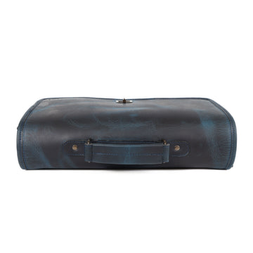The Parker blue messenger bag showcases authentic full grain water buffalo leather in a rich blue finish. Each piece displays natural variations in tone and texture, a hallmark of genuine leather that ensures no two bags are identical. These subtle differences enhance the bag’s character, revealing the material’s organic beauty and craftsmanship while developing a distinctive patina with age.