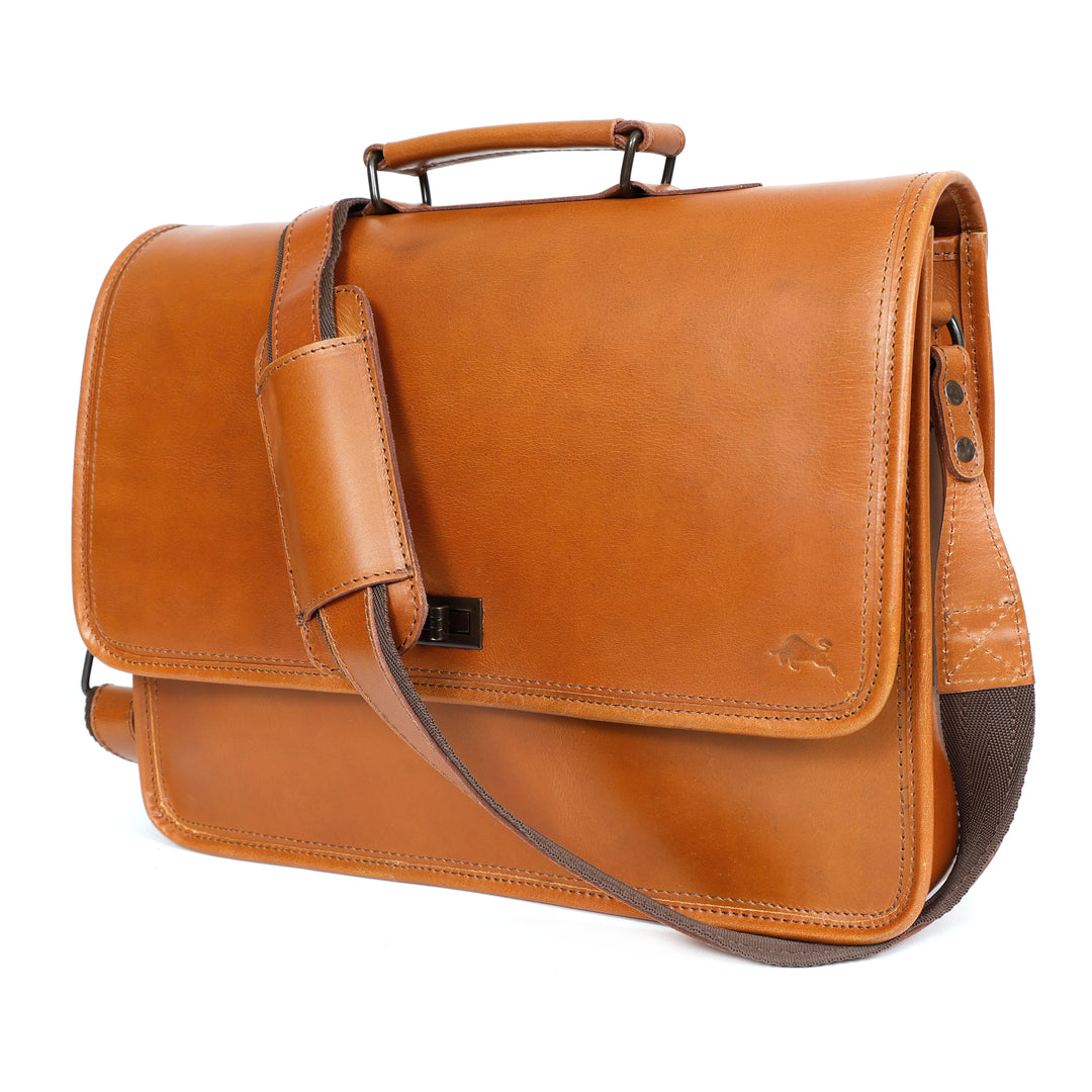 Crafted from genuine full grain water buffalo leather, our new tan Parker messenger bag delivers timeless style and uncompromising durability. Its rich tan finish develops character with every use, making it the perfect companion for professionals who demand quality that lasts. Built to handle daily wear while maintaining its sophisticated appearance, this messenger bag proves that true craftsmanship never goes out of style.
