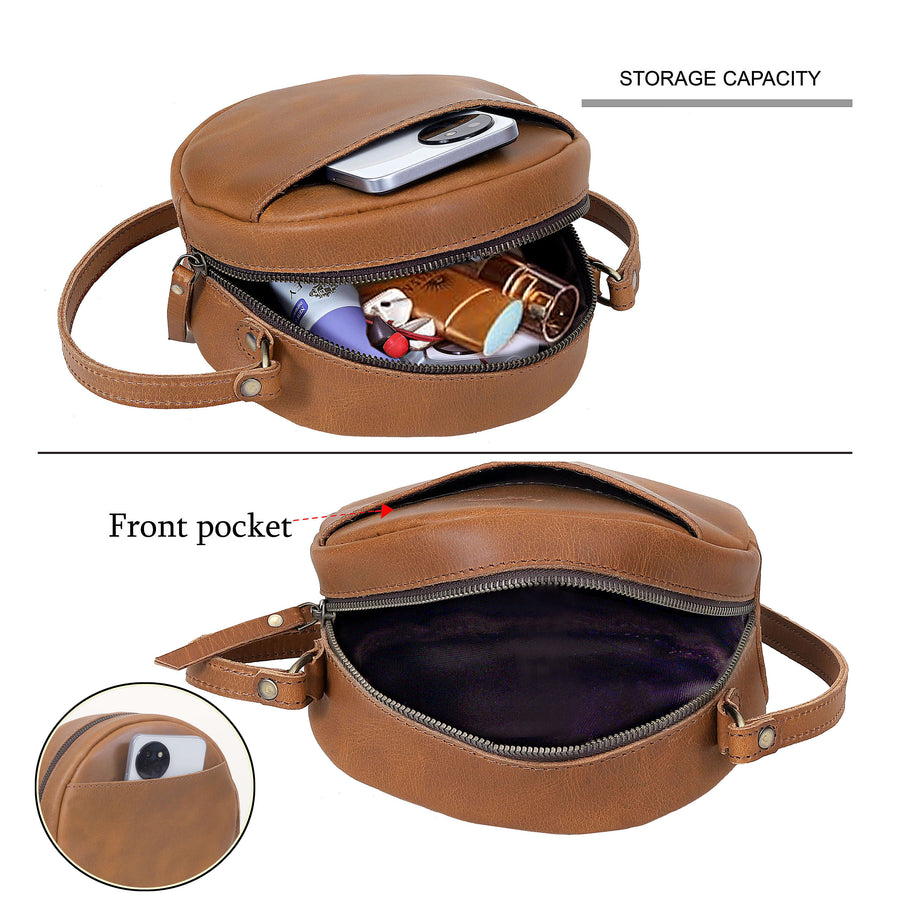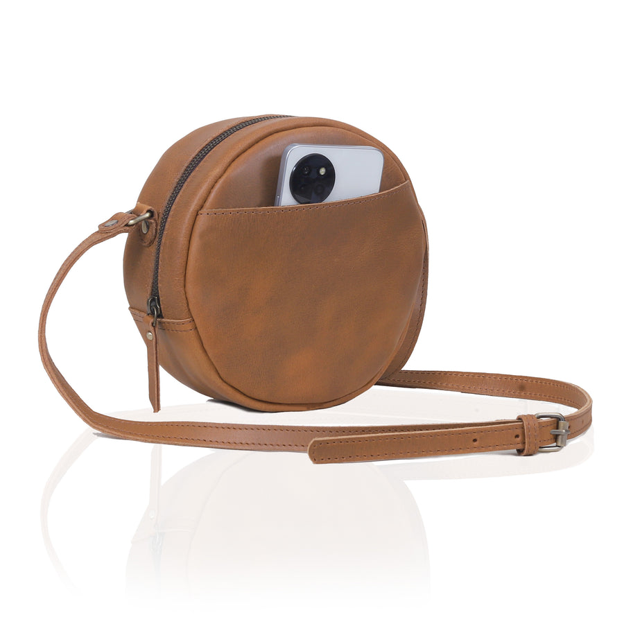 Quinn Round Circle Buffalo Leather Handbag