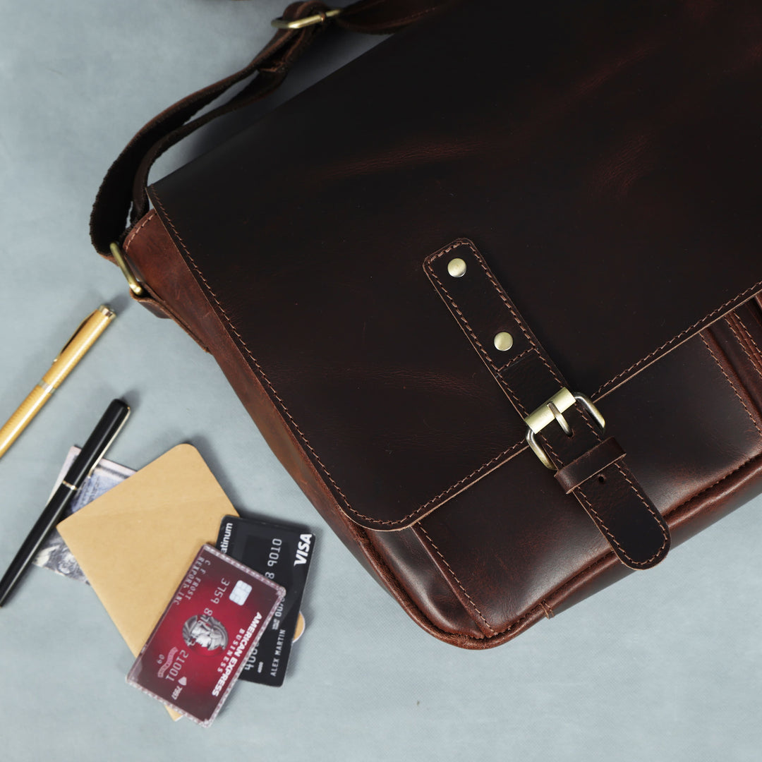 Experience rugged luxury with our Raven Buffalo Leather Messenger Bag. Made from full grain water buffalo leather, this bag is both durable and elegant, making it the perfect choice for daily use. Its spacious design and timeless appeal will only improve with time.