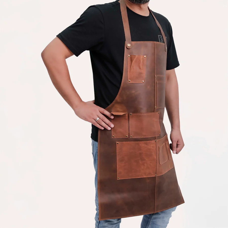 Discover the ultimate blend of style, durability, and functionality with our Timber tailor Pro Leather Apron. Crafted from premium cowhide leather with precise attention to detail it offers adjustable straps ample storage with multiple pockets and robust brass accents. Designed for the modern woodworker this apron combines traditional craftsmanship with contemporary needs. Elevate your woodworking experience with this essential tool.