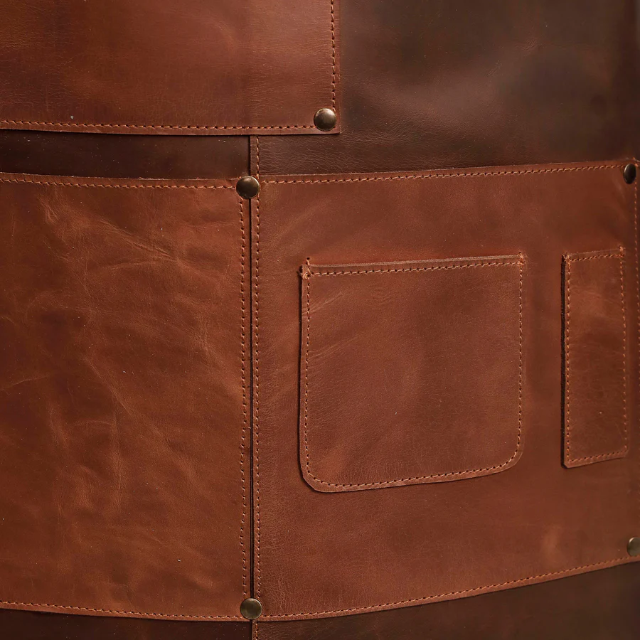 - Metallic Accents: The apron features stylish and durable brass accents that enhance both functionality and aesthetic appeal.